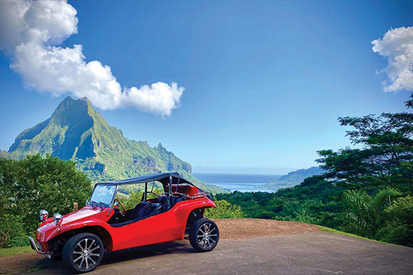 Other than a car rental, drive your buggy around Moorea and stop when you want to enjoy the beautiful look-out points and the interresting places.